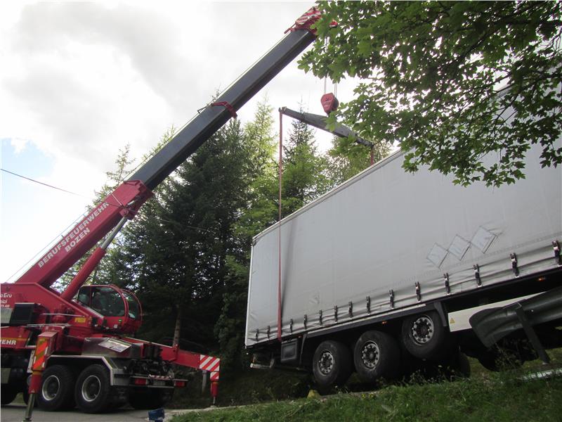 In der Fraktion Obereggen in der Gemeinde Deutschnofen hat ein mit Holfaserdämmplatten vollbeladener Sattelschlepper am Kreisverkehr die falsche Ausfahrt genommen und ist nach etwa einem Kilometer in einer Sackgasse gelandet. Da es für den Fahrer nicht mehr möglich war das Fahrzeug zu wenden und es keine weitere Möglichkeit mehr gab die Gemeindestraße zu verlassen, wurde die Feuerwehr alarmiert.