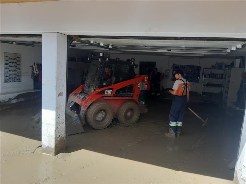 Seit gestern Abend ist die Berufsfeuerwehr mit Räumgeräten, Pumpen und Stromaggregaten dort im Einsatz