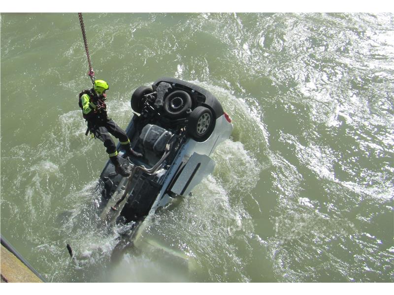 Die Fließwasserretter der Wasserrettung der Berufsfeuerwehr Bozen begaben sich unmittelbar schwimmend zum Fahrzeug und konnten dieses und die darin befindliche Person sichern. Das Fahrzeug wurde mit einem Feuerwehrkran in Position gehalten. An dieser Stelle ist die Strömung im Eisack besonders stark.