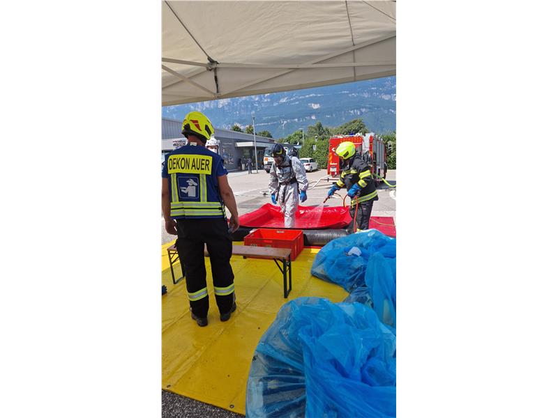 Heute um 10:18 Uhr wurden die Chemieeinsatzgruppe der Berufsfeuerwehr Bozen, die Freiwillige Feuerwehr Neumarkt und die Dekontaminationsgruppe der Freiwilligen Feuerwehr Auer zu einem Chemieunfall im öffentlichem Schwimmbad von Neumarkt alarmiert.