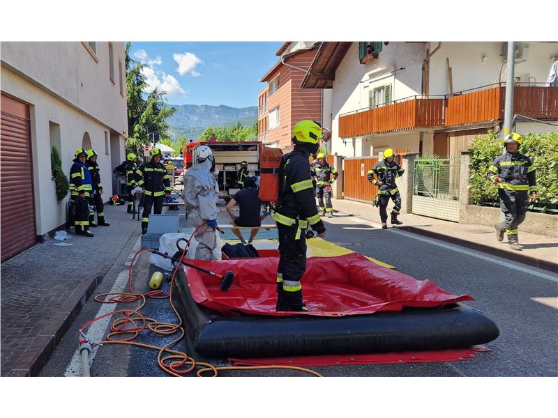Die Berufsfeuerwehr Bozen rückte mit der Einsatzmannschaft gemeinsam mit der Ortsfeuerwehr und der Feuerwehr Auer aus. Vor Ort sicherte die Feuerwehr den Bereich ab. Eine erste Mannschaft mit Schutzanzügen und Atemschutz drang in den Raum vor und beseitigte rasch die Ursache des Austrittes. Anschließend belüftete die Feuerwehr die betroffenen Räume und sicherte das Gelände ab. Die Situation ist mittlerweile unter Kontrolle, jegliche ausgetretene Substanzen werden aufgefangen. Es gab keine Verletzte.