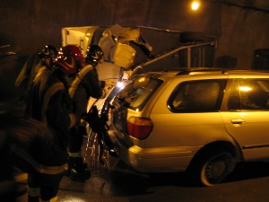 Foto BFBZ VVFBZKurz nach 13:00 Uhr wurde die Berufsfeuerwehr Bozen zu einem Verkehrsunfall auf die Nordspur im MEBO-Tunnel bei Sigmundskron gerufen. Dort war es zu einem Unfall gekommen, bei dem ein Fahrzeug mit Wohnanhänger und ein weiteres Fahrzeug beteiligt waren. Gleich bildete sich ein langer Stau, da beide Fahrspuren durch die Unfallfahrzeuge blockiert wurden. Beim Unfall wurde glücklicherweise nur eine Person leicht verletzt. Während der Fahrzeugbergung, welche ca. 1 ½ Stunden dauerte musste die Nordspur gesperrt bleiben, auch um eine Verschleppung des ausgelaufenen Öls zu vermeiden. Um den umgekippten Wohnanhänger aufzurichten, musste die Deichsel mit Schneidbrennern abgeschnitten werden. Während der Arbeiten betreute eine RTW- Mannschaft vom Weißen Kreuz die im Tunnel wartenden Personen. Vor Ort waren auch die Straßenpolizei und der Straßendienst.