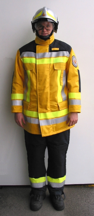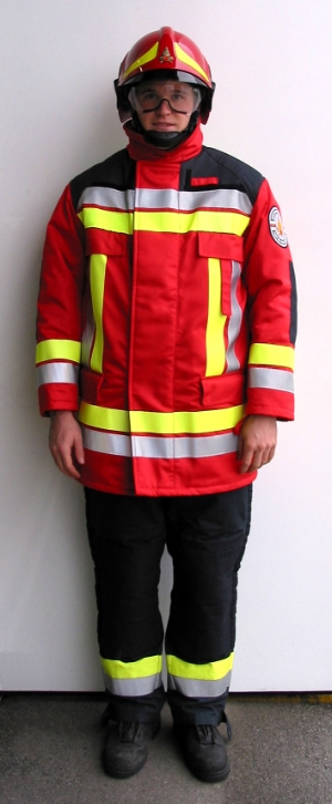 Der umfangreiche und unterschiedliche Arbeitsbereich einer Feuerwehr stellt insbesondere an die persönliche Schutzkleidung eines jeden Feuerwehrangehörigen hohe und diverse Anforderungen. Der Schutz gegen thermischen Einwirkungen und einer kurzzeitigen Flammenbeaufschlagung, mechanische Festigkeit und Beständigkeit sowie eine optimale Erkennbarkeit sind Grundanforderungen einer persönlichen Schutzkleidung.