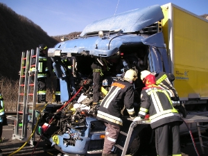 Nachdem der Notarzt des Rettungshubschraubers Pelikan 1 , den Patienten erstversorgt hatte, konnten die freiwillige Feuerwehr Neumarkt und die Berufsfeuerwehr Bozen zusammen beginnen, den eingeklemmten Fahrer mit hydraulischen Bergegeräten vorsichtig aus der Kabine zu befreien. Der schwerverletzte Fahrer wurde anschließend mit dem Rettungshubschrauber ins Bozner Krankenhaus geflogen.