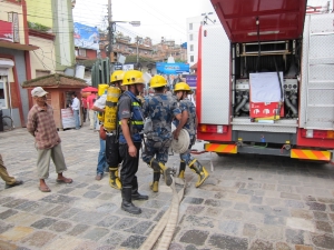 Die Bozner Kollegen üben mit den nepalesischen Feuerwehrmännern auf den Strassen der Hauptstadt - Bei einem Kellerbrand kam bereits das übergebene Tanklöschfahrzeug zum Einsatz - Einige Bildeindrücke