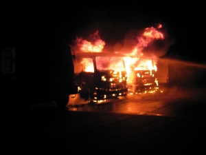 2 camion che erano parcheggiati all'esterno sul sedime della ditta Autoindustriale sono bruciati completamente. All'arrivo sul posto delle squadre di intervento entrambi gli automezzi erano giá interamente avvolti dalle fiamme, quindi non é stato possibile salvarli. Il rapido intervento di spegnimento ha impedito che l'incendio si propagasse agli automezzi parcheggiati vicini limitando cosí danni maggiori. Le cause dell'incendio sono ancora in via di accertamento.