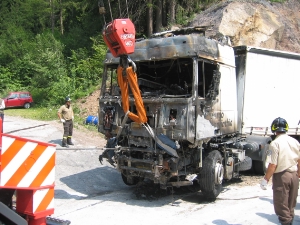 Foto BF BZ VVF BZOggi , in tarda mattinata, sulla strada di Sarentino all'altezza della segheria Sarner Holz la motrice di un autotreno austriaco è stata completamente distrutta da un incendio. L'autista, allontanatosi dalla cabina di guida, tornava dopo pochi minuti trovandola completamente avvolta dalle fiamme. L' incendio veniva spento dai Corpi Volontari dei Vigili del Fuoco di Sarentino e Campolasta. Per liberare la strada principale, rimasta bloccata dall'automezzo, la motrice doveva venire recuperata dall'autogrù del Corpo Permanente dei Vigili del Fuoco di Bolzano e trainata fino ad uno spazio libero nei pressi. Una ditta privata provvedeva infine al trasporto del rimorchio carico di legname. In intervento, a fianco dei Corpi di Sarentino e Campolasta vi erano il Corpo Permanente di Bolzano, i Carabinieri la Polizia Municipale ed il servizio strade di Sarentino.