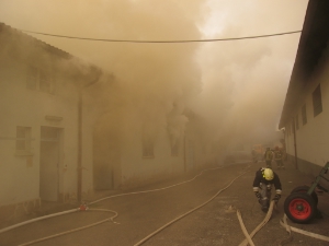 Un incendio di un solaio in legno in un magazzino provoca un intervento notevole.
