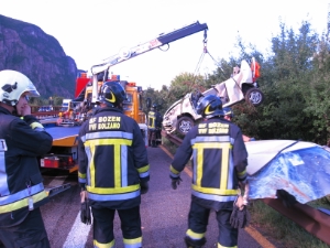In seguito ad un tamponamento tra due vetture, una di queste é stata sbalzata oltre il guard rail, finendo dentro un gruppo di alberi oltre la scarpata della corsia autostradale. In seguito all' incidente entrambi gli occupanti dell'autovettura sono rimasti gravemente feriti :nonostante le cinture di sicurezza una persona é stata sbalzata dalla vettura finendovi sotto, mentre l' altra é rimasta incastrata all' interno. In collaborazione con i Vigili del Fuoco Volontari di Egna, dopo il taglio di alcuni rami l'autovettura é stata messa in sicurezza ed i feriti recuperati. il conducente dell'altro veicolo coinvolto ha riportato soltanto ferite lievi.
