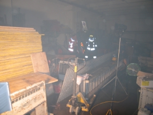 Nel magazzino al piano interrato presso una ditta edile, un incendio ha causato alcuni danni alle attrezzature.