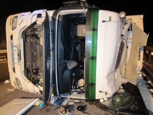 Nella scorsa notte il Corpo Permanente dei Vigili del Fuoco di Bolzano é stato allertato dalla Centrale Provinciale di Emergenza anche per un incidente stradale avvenuto sulla A22. Al km 69 sulla corsia sud (all'altezza dell'entrata di un distributore) si é verificato un incidente che ha coinvolto un camion. Mentre l'autista del mezzo é stato trasportato all'ospedale di Bolzano con ferite leggere, si riscontrava la difficoltá del recupero del camion il quale era carico di carne e qundi é stato possibile recuperare il mezzo con l'autogru del Corpo Permanente dei Vigili del Fuoco solo dopo aver trasferito tutto il carico. Durante le operazioni di recupero (dalle ore 21.30 circa fino alle 05.00 circa)l´autostrada é stata transitabile solo su una corsia.