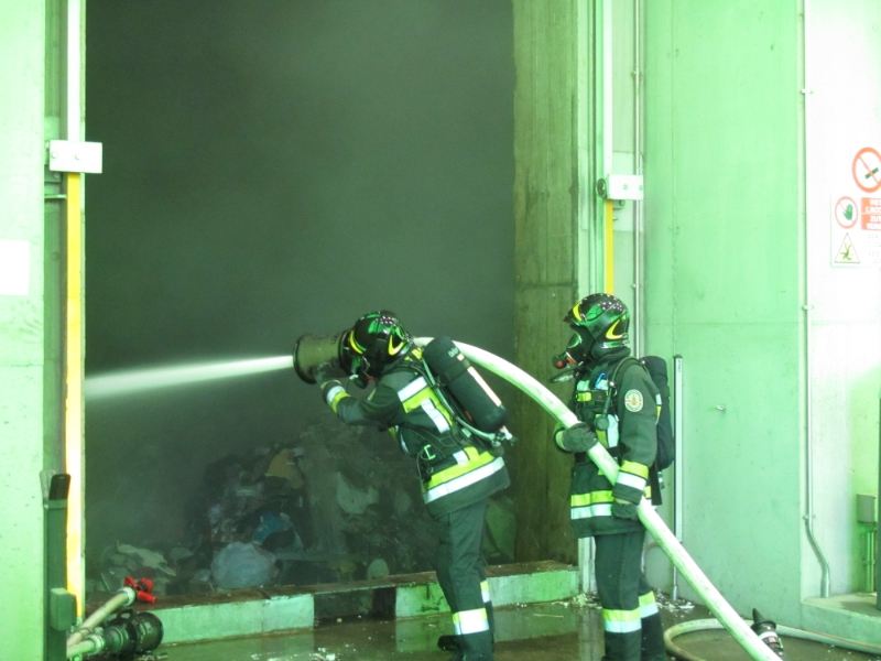 Incendio si era sviluppata nel trituratore dei rifiuti. L'incendio è spento - Una squadra è ancora sul posto per vigilare il luogo