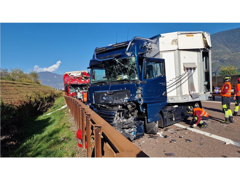 Quattro automezzi pesanti si sono tamponati. Una persona è rimasta incastrata nella cabina ed é stata liberata con l'ausilio delle pinze idrauliche. Dopo le prime cure sul posto dal parte del medico d'urgenza, la persona è stata elitrasportata all'ospedale di Bolzano con l'elicottero Pelikan 1. Lievi le ferite riportate da un altro camionista che poi è stato trasportato all'ospedale con l'ambulanza della Croce Bianca.