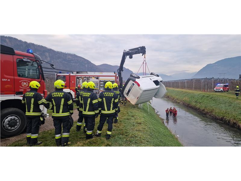 Nella mattinata del 03.12.2025 un furgone è uscito di strada nel territorio comunale di Bronzolo finendo nel canale Rio Lusina. Il veicolo si è fermato su un fianco ed era sommerso per circa un terzo. Il conducente, impossibilitato ad aprire le portiere, ha rotto il parabrezza dall’interno per mettersi in salvo e ha raggiunto autonomamente una vicina azienda agricola, dove è stato assistito dalla Croce Bianca.