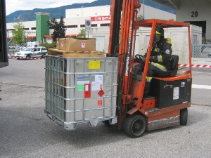 Alle ore 13:50 arrivava presso il CPVVF-BZ la chiamata di soccorso per odore di gas con persona svenuta presso la ditta FERCAM nella zona industriale di Bolzano. Un camion della FERCAM con all’interno due fusti di concentrato per l´industria di 500kg ciascuno era parcheggiato davanti alla sede della ditta FERCAM. Uno dei due contenitori aveva perso del liquido dal rubinetto di scarico. A causa dei vapori un dipendente addetto al movimento merce ha perso i sensi. Altre tre persone tra cui l’autista del camion sono venute a contatto con la sostanza pericolosa e a scopo precauzionale sono stati trasportati in ospedale. Le squadre del Corpo Permanente dei VVF hanno assistito le persone coinvolte fino all’arrivo del servizio sanitario con il medico d´emergenza, hanno delimitato la zona pericolosa effettuando la protezione antincendio e un primo sopralluogo con autorespiratori. In seguito con l´ausilio di un muletto il personale della squadra scaricava il camion bonificava il rimorchio, chiudeva la perdita e metteva in sicurezza la zona. Supportati dai Vigili urbani si é provveduto temporaneamente a una limitazione del traffico nella zona antistante la FERCAM. Sul posto era presente anche una squadra della Questura. Per le ditte confinanti non é stato necessario adottare nessuna precauzione.