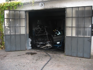 Foto BFBZ - VVFBZOggi verso le 10 i vigili del fuoco del Corpo Permanente di Bolzano sono intervenuti in via delle Fucine a Bolzano presso un’autofficina: una Fiat Bravo aveva preso fuoco a causa di un guasto tecnico. L’intervento di spegnimento ha consentito di limitare i danni dell’officina, mentre la macchina è andata completamente distrutta insieme a parte dell’attrezzatura che era vicina.