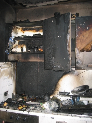 Altro personale VF provvedeva ad evacuare, tramite autoscala, due abitanti il piano sovrastante minacciato dal fumo. Ingenti i danni all'appartamento e soprattutto alla cucina da cui si é sviluppato l'incendio.