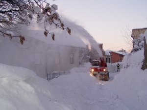 Foto BFBZ - VVFBZI lavori di sgombero neve svoltisi nella giornata di ieri 31.01.2005, che si sono protratti fino a tarda serata (fino alle ore 23:00), sono continuati anche nella giornata odierna. In accordo con i Sindaci delle localitá coinvolte e con i Vigili del Fuoco del Corpo Nazionale, in mattinata si é deciso di concentrare le nostre unitá principalmente nella localitá Cingoli (Provincia di Macerata). Qui si cercherá di liberare il centro storico dalle masse nevose. Nella localitá Pergola (Provincia di Pesaro), per tutta la giornata é stata impiegata la pala gommata CAT IT 28, che probabilmente in serata verrá dirottata in localitá Cingoli.