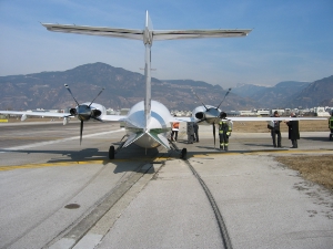 Foto BFBZ / VVFBZVerso le 11.30 è stato allarmato il nucleo aeroportuale VV.F del Corpo Permanente dei Vigili del Fuoco di Bolzano per un intervento sulla pista dell´aeroporto di Bolzano. Un aeromobile della protezione civile nazionale ha subito durante la fase d´atterraggio un danno al pneumatico del carrello posteriore destro. Il pilota e il copilota sono stati in grado di mantenere l´aeromobile sulla pista. I danni al cerchione e al pneumatico sono stati tali che è stato necessario asportare il velivolo. Essendo l´aeromobile in mezzo alla pista, il traffico aereo è stato chiuso dalla coordinatrice dell´Ente Nazionale Aviazione Civile (U.O.P. Unitá Operativa Periferica) per il periodo di asporto dell´velivolo il quale si è protratto fino alle ore 13:05. Per mezzo di un sollevatore idraulico è stato possibile infilare sotto il carrello danneggiato, un ulteriore carrello di proprietà del gestore aeroportuale con il quale è stato possibile trasportare l´aeromobile nell´ Hangar adiacente. Da questo incidente tecnico i passeggeri ne sono usciti fortunatamente incolumi. Sull´luogo di intervento erano presenti anche la Guardia di Finanza, i Carabinieri , la Polizia Statale e Ente Nazionale Aviazione Civile che procederà a appurare le cause dell´incidente.