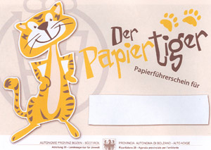 Il percorso interattivo "La tigre di carta" la carta riciclata nelle scuole proposto dall'Agenzia provinciale per l'ambiente durante l'anno scolastico 2008/09 ha visto coinvolte 84 classi. Un successo inatteso, come afferma l'assessore provinciale all'ambiente Michl Laimer; per altre 80 classi la partecipazione al progetto si è dovuta rinviare all'anno prossimo.