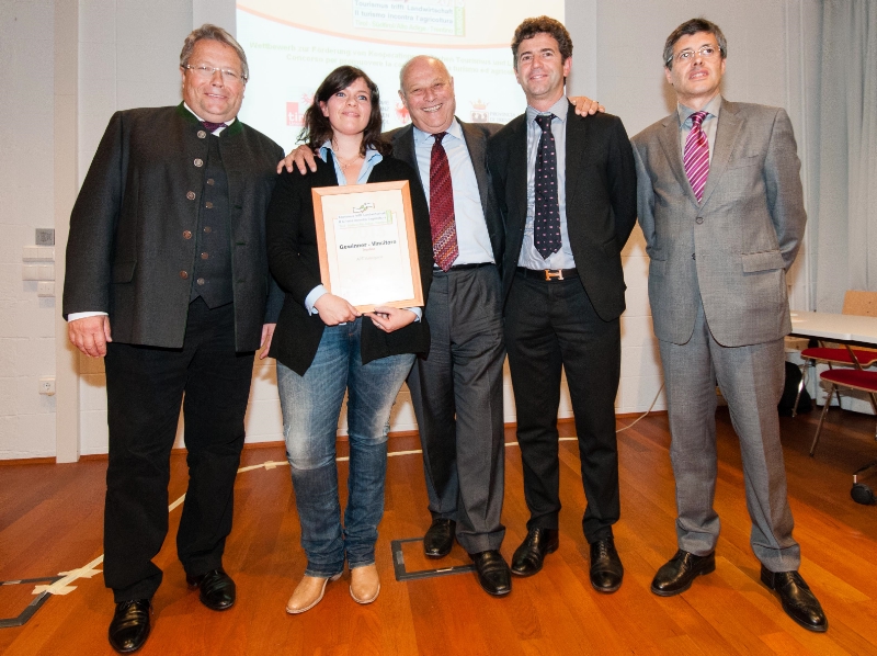 Per quanto riguarda l'Alto Adige, i progetti premiati ex-aequo sono stati due. Il primo si intitola "Pur Südtirol - i mercati del gusto - il sapore della nostra terra", della Meraner Weinhaus, azienda con punti vendita a Merano, Brunico e in altre dieci località della Provincia. Qui e nello shop online (2mila visitatori alla settimana) vengono offerti 1600 prodotti di 137 aziende agricole e 28 cooperative, acquistati per la metà da consumatori locali, e per il restante 50% da turisti. Il progetto della scuola professionale per l'agricoltura di Teodone e della scuola alberghiera di Brunico, invece, si intitola "L'agricoltura incontra il turismo - Il turismo incontra l'agricoltura", e prevede una serie di scambi tra i due istituti per consentire ai ragazzi di approfondire le conoscenze in entrambi i settori.