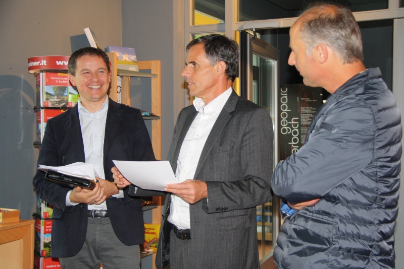 I primi passi sono già stati avviati con l'istituzione di un collegamento autobus verso il GEOPARC e nel 2013 il Comune di Aldino ha acquistato, nel quadro di un progetto UE, 18 biciclette elettriche. Nel corso dell'incontro con l'assessore Theiner si è parlato anche delle misure di sicurezza adottate a tutela dei visitatori: obbligo del casco, manutenzione e interventi di protezione lungo i sentieri assieme all'amministrazione forestale provinciale, installazione di webcam per monitorare il meteo e il controllo costante del rischio frane nei punti più sensibili. Theiner ha elogiato la collaborazione in atto tra tutte le parti interessate, "che favorisce la buona immagine del Bletterbach, che va a vantaggio di tutti". Ulteriori passi sono in arrivo: a breve sarà pubblicata una cartina congiunta con le escursioni nelle sette malghe dell'area comunale di Aldino. "L'obiettivo a lungo termine è quello di coinvolgere ancor di più la popolazione locale e far crescere la consapevolezza della specialità del GEOPARC bene mondiale Unesco", ha concluso il presidente Daldos.