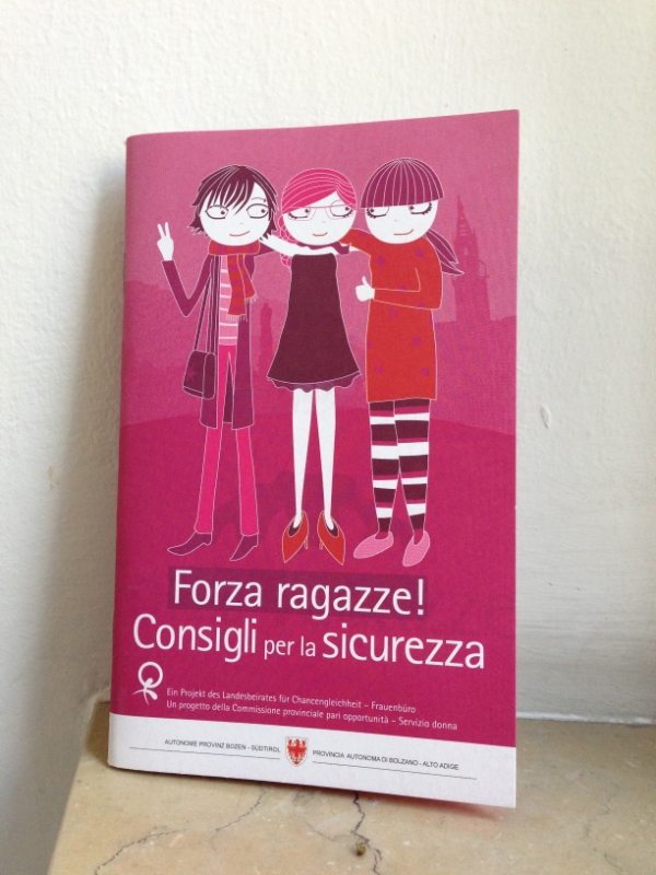 L'opuscolo "Forza ragazze! Consigli per la sicurezza" può essere richiesto presso il Servizio donna, Via Dante 11, 39100 Bolzano, tel. 0471 416950 oppure scaricato dal sito: www.provincia.bz.it/pariopportunita.