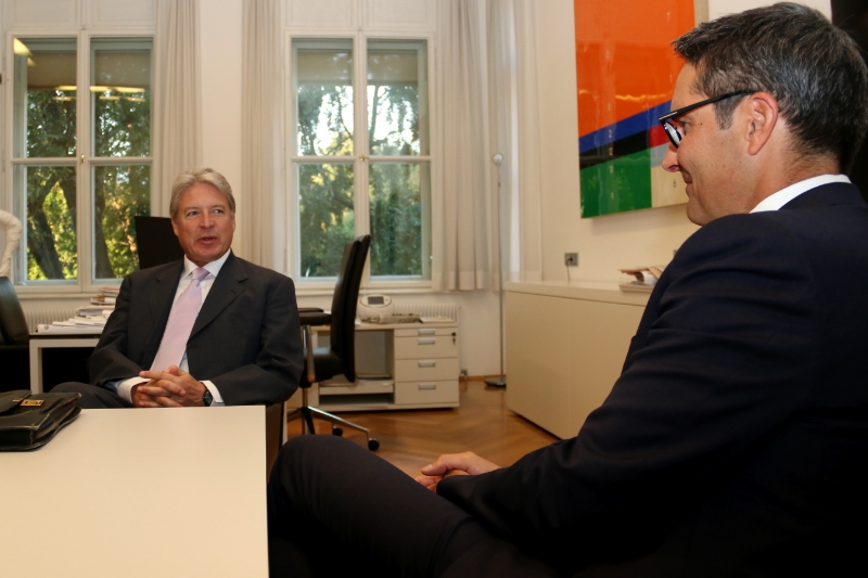Autonomia, riforma costituzionale in Italia, profughi: questi alcuni dei temi discussi oggi (30 settembre) a Bolzano dal presidente della Provincia Arno Kompatscher con l'ambasciatore austriaco in Italia René Pollitzer.