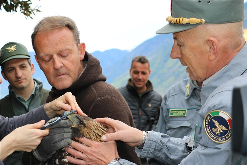 "Si tratta dell'altitudine necessaria per questioni non solo termiche, ma anche di difesa personale dell'aquila", hanno spiegato Willi Campei, Florian Gamper e Philipp Campei del Centro avifauna. Le operazioni di inanellatura dell'esemplare liberato sono state eseguite da due ornitologi del Muse di Trento su incarico dell'ISPRA (Istituto superiore per la protezione e la ricerca ambientale), mentre un veterinario ha provveduto a colorare di giallo alcune piume della coda con una speciale soluzione che si cancella con il corso del tempo.