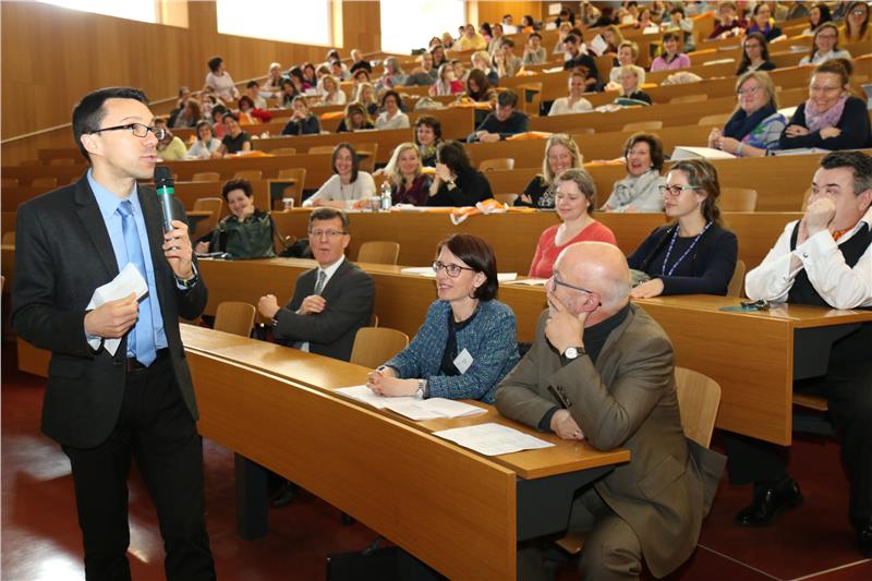 L’assessore provinciale all’istruzione in lingua tedesca, Philipp Achammer, ha posto in rilievo il ruolo rilevante degli insegnanti che in classe agli studenti portano la loro passione ispriratrice. Creare ponti, come il titolo del convegno “Building Bridges”, è di fondamentale importanza oggigiorno quando più che di ponti si parla di barriere, come ha fatto presente l’assessore Achammer; grazie all’apprendimento delle lingue, però, è possibile ampliare l’orizzonte.