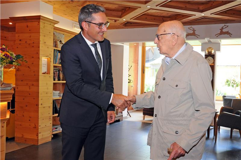 Anche quest'anno il presidente emerito della Repubblica, nonchè senatore a vita, Giorgio Napolitano, sta trascorrendo un periodo di ferie in Alta Val Pusteria, dove nei giorni scorsi ha ricevuto la visita informale del presidente della Provincia, Arno Kompatscher. "Abbiamo avuto un colloquio lungo e amichevole - commenta Kompatscher - e ci siamo confrontati su diversi temi legati all'attualità politica nazionale ed internazionale". Oltre ad analizzare la situazione italiana, con particolare attenzione alla riforma della Costituzione e alla legge elettorale, Kompatscher e Napolitano hanno discusso di economia, crisi bancarie, nonchè di profughi e immigrazione.
