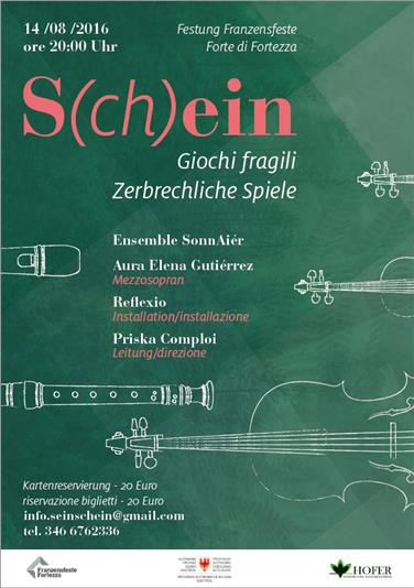 Domenica 14 agosto, alle ore 20,00, andrà in scena nel forte di Fortezza il progetto artistico “S(ch)ein – Giochi fragili” che coniuga musica e installazioni artistiche con l’epoca barocca e presente.