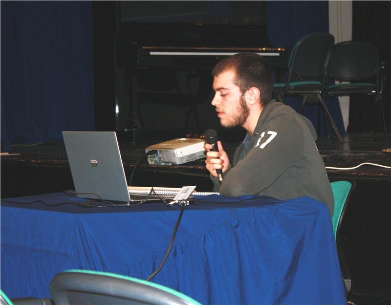 Nella Foto Davide Benedetti del Liceo Scientifico "Torricelli" di Bolzano mentre illustra, in tedesco, gli aspetti più significativi del suo soggiorno in Germania Foto: USP - F. Grigoletto