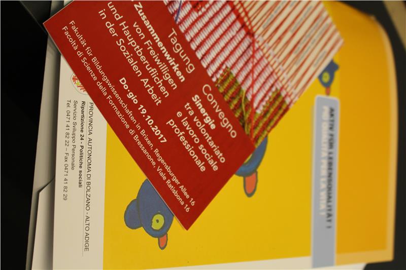 Un concetto, quest'ultimo, ribadito anche da Georg Leimstädtner, direttore della Federazione per il sociale e la sanità, mentre Brigitte Waldner, direttrice dell'Ufficio anziani e distretti sociali ha paragonato il lavoro nel settore sociale ad un pezzo di stoffa, "con ogni filo che è diverso dall'altro, ma che è assolutamente necessario". Le tematiche del convegno, intitolato "Sinergie tra volontariato e lavoro sociale professionale", sono state poi approfondite nel corso di 5 workshop, mentre Paola Tasser, Daniela Erhard e Nicole Schwarz hanno illustrato una serie di esempi positivi: dalla casa di riposo di San Martino in Badia ad un progetto di assistenza all'infanzia in Val Venosta. Il convegno è stato organizzato dalla Ripartizione provinciale politiche sociali in collaborazione con la Libera Università di Bolzano, la Federazione per il sociale e la sanità e le scuole provinciali per le professioni sociali.