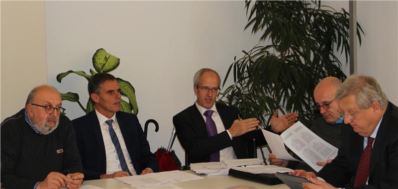 da sx: il nuovo coordinatore Wolfgang Plank, l'assessore Theiner, il direttore di Dipartimento Florian Zerzer, Ruffini, e Johann Wohlfarter (Alperia Greenpower) (Foto: USP/S.Amistadi)