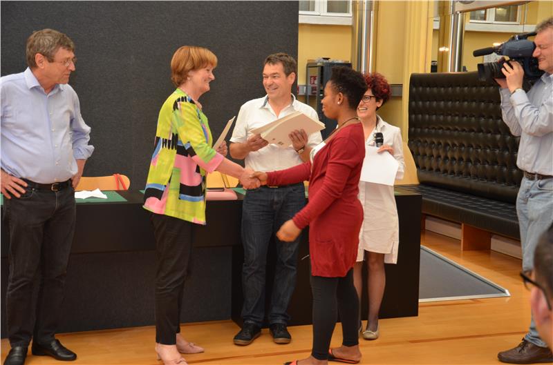 Sono stati consegnati questo pomeriggio (28 maggio) a 50 richiedenti asilo dall’assessora provinciale alla salute, politiche sociali e lavoro, Martha Stocker, gli attestati di partecipazione al progetto pilota hamet2F che mira all’accertamento delle competenze professionali per l’inserimento nel mondo del lavoro. Nel corso della cerimonia l’assessora Stocker si è congratulata con i partecipanti per l’impegno e l’attenzione che hanno dedicato al test: "grazie a questa certificazione delle vostre competenze - ha detto - potrete avere maggiori opportunità di entrare nel mondo del lavoro altoatesino. Un ruolo importante in questo contesto è rappresentato anche dalla conoscenza del tedesco e dell’italiano e vi invito quindi ad impegnarvi anche nello studio delle due lingue locali".