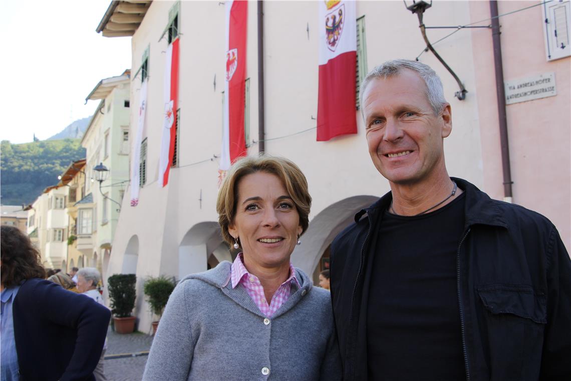 Veronika e Klaus Mayr (47 e 54 anni) vivono a Egna. Solo grazie a questa festa, dice, Klaus è diventato consapevole della "grande importanza che l'Euregio ha per noi: possiamo solo trarre profitto dal punto di vista culturale ed economico, ed è bello che le persone di tutti e tre i paesi vedano quanto Egna sia un luogo bello e interessante". Veronika spera che "l'idea europea si realizzi sempre più compiutamente. L'Euregio è un piccolo passo verso il superamento di tutti i piccoli pensieri nazionalistici". L'atmosfera positiva e l'interessante mix di ottimi prodotti contadini e buona musica hanno fatto in questo contesto la propria parte.