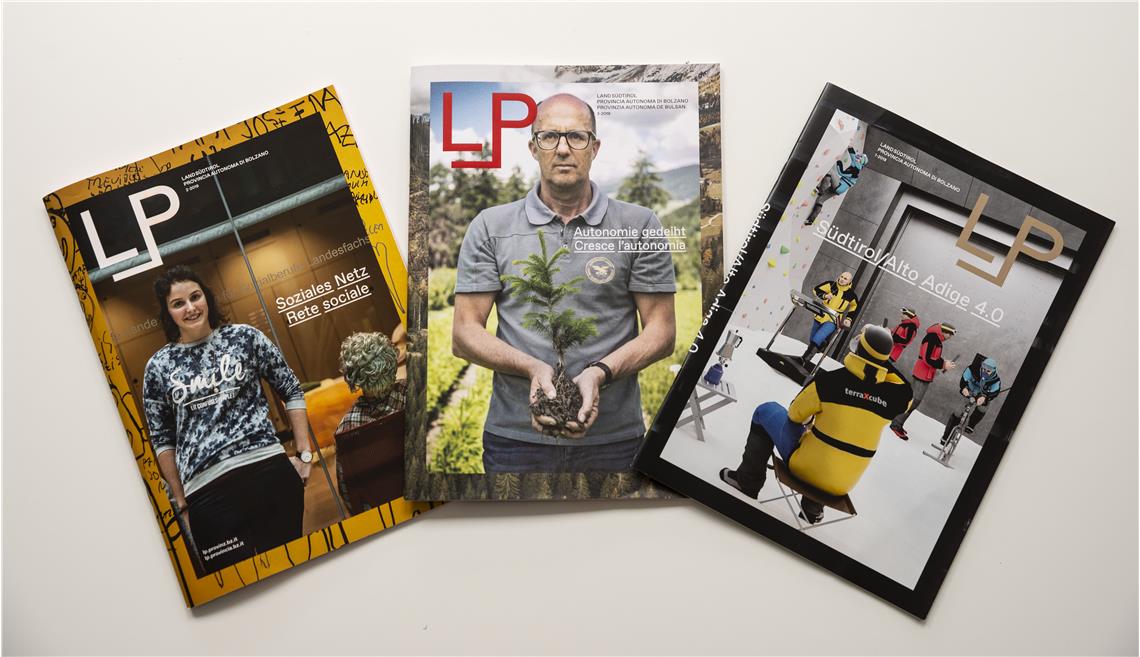 LP è la rivista bilingue edita dalla Provincia - che ha preso il testimone dalle pubblicazioni Land Südtirol e Provincia di Bolzano - il cui layout è realizzato da un team di ricerca della Facoltà di Design ed ha una versione cartacea che si integra con contenuti online. Il primo numero del periodico dedicato al tema ricerca e innovazione è uscito a dicembre 2018, nel secondo si è parlato di sociale, e nel terzo, pubblicato in estate, di autonomia.
