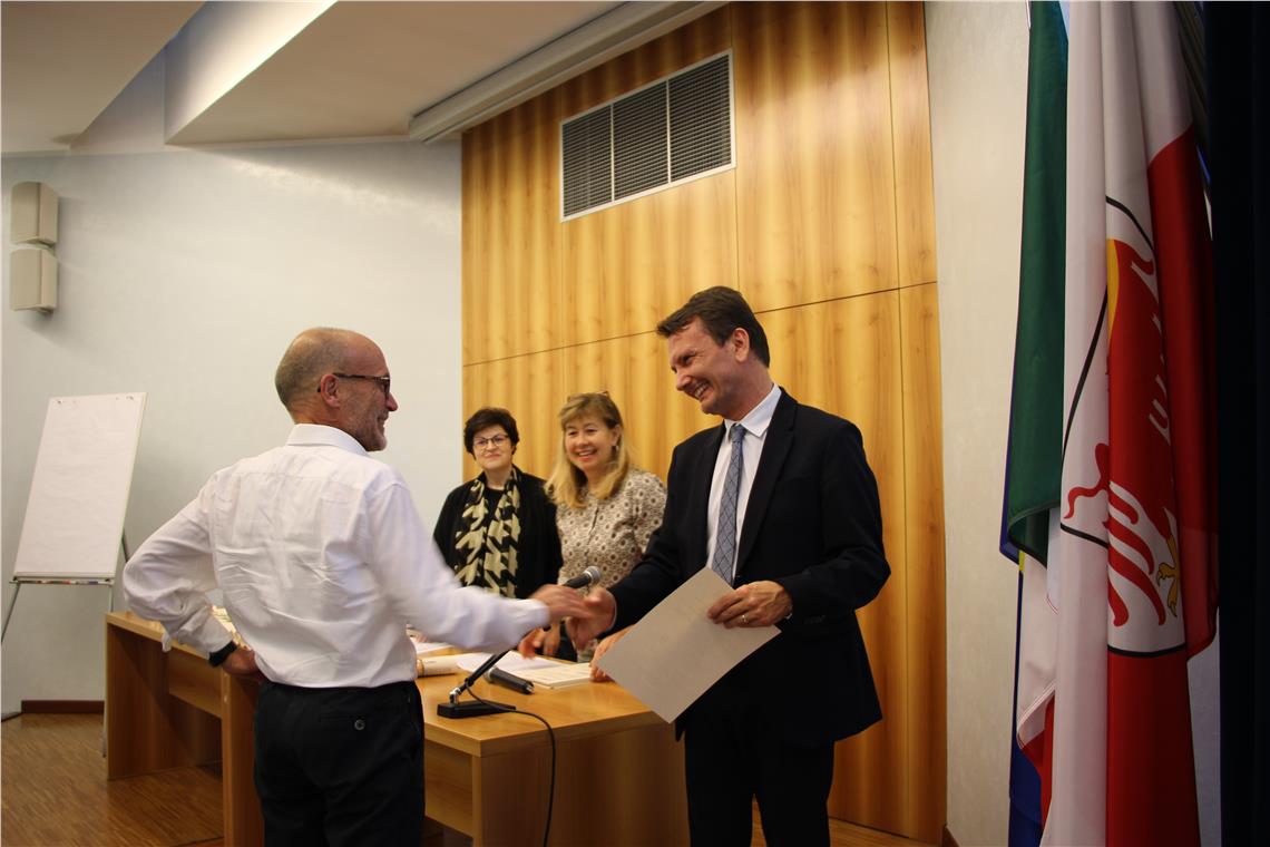Giornata di festa e ringraziamenti, presso il Convitto Damiano Chiesa, per i 67 docenti della scuola italiana che dal 1° settembre hanno raggiunto il traguardo della pensione.