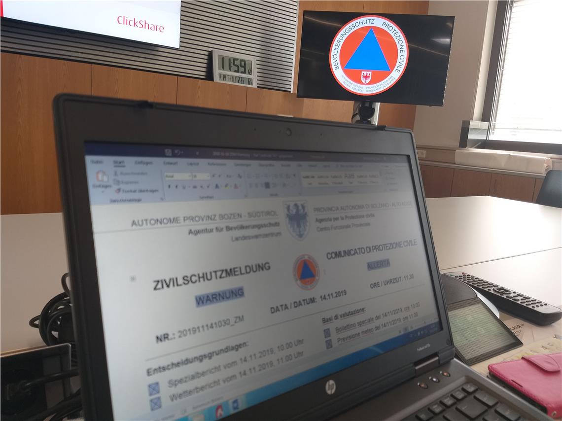 Il gruppo di valutazione del Centro funzionale provinciale, riunitosi questa mattina presso la sede dell'Agenzia per la protezione civile, ha deciso di portare da subito, e sino alle ore 12 di sabato 16 novembre, lo stato di protezione civile al livello bravo (arancione), ovvero quello di pre-allarme. Si tratta del terzo livello su una scala di quattro. Ciò significa che è avvenuto un evento rilevante da un punto di vista di protezione civile, le forze di pronto intervento sono in azione, e tutte le autorità del sistema di protezione civile sono state informate. Il centro funzionale provinciale e le centrali operative sono in contatto con le zone colpita e intervengono con tutte le misure necessarie per tenere a bada il rischio per la popolazione e il territorio.