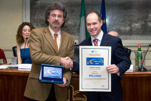 Bei der Preisverleihung vergangene Woche in Rom hat Massimo Tomio, Direktor des Verwaltungsamts für Straßen im Bautenressort, die „Targa blu“ für das Land Südtirol entgegen genommen.