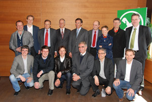 Alle für einen lebendigen Ort: LR Widmann mit den Vertretern der Gemeinden und der Raiffeisenkasse Bruneck
