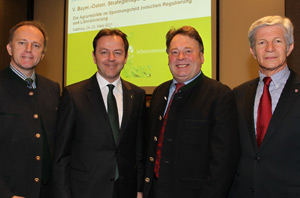 Wie gestern auch, stand heute zunächst die Gratwanderung, auf die sich die Landwirtschaft zu begeben hat, im Mittelpunkt der Tagung: "Es geht um die Frage, wie die Landwirtschaft alle Erwartungen erfüllen kann, nämlich Lebensmittel, Futter- und Energiepflanzen herzustellen", so Berger, der das Dilemma auf die drei Begriffe Teller, Trog und Tank herunterbricht. Auf dieses Dilemma habe die EU-Agrarpolitik eine Antwort zu finden, erklärt der Landesrat. "Gleichzeitig müssen aber auch die Leistungen hervorgestrichen werden, die die Landwirtschaft für die Gesellschaft erbringt, damit die hohen Investitionen in die Landwirtschaft gerechtfertigt werden können", so Berger.