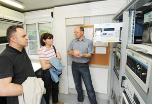 LPA - Mehrere interessierte Bürger haben heute, 12. April, den Mitarbeitern des Labors für physikalische Chemie bei den Luftmessungen an der Messstation am Hadrianplatz in Bozen über die Schulter geschaut. Anlässlich des 15-jährigen Bestehens der Landesumweltagentur hatte das Labor für physikalische Chemie der Umweltagentur die Bürger eingeladen, bei den Messungen mit dabei zu sein.