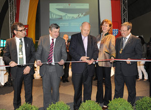 Band durchschnitten: (v.l.) BM Schatzer, LR Mussner, LH Durnwalder, LRin Sabina Kasslatter Mur und BM Pürgstaller (Foto: Pertl)