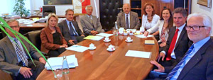 An dem Treffen in den Amtsräumen von Landeshauptmann Durnwalder im Bozner Palais Widmann nahmen neben den Landesvertretenden im Unirat, Präsident Konrad Bergmeister, Vizepräsident Pietro Borgo, sowie die Mitglieder Adolf Auckenthaler, Manuela Nocker und Nikolaus Tribus, auch die Direktorin des Ressorts für Denkmalpflege, Bildungsförderung, deutsche Kultur und Museen, Karin Dalla Torre, und der Direktor der Abteilung Bildungsförderung, Universität und Forschung, Günther Andergassen, teil.