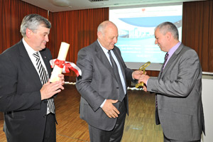 LPA - Für das neue Gebäude des humanistischen Gymnasiums „Beda Weber“ in Meran haben Landeshauptmann Luis Durnwalder und Bautenlandesrat Florian Mussner heute, 18. Mai, Schuldirektor Ferdinand Pattscheider die Schlüssel und die Nutzungsgenehmigung überreicht. Bei einem Rundgang haben sich Durnwalder und Mussner ein Bild von dem neuen Gebäude gemacht.
