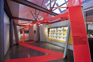 Was bedeutet Gestaltung im Sinn von Entwurf und Formgebung im Rahmen einer Ausstellung? Wie werden Inhalte in sinnlich erfahrbare Räume übersetzt? Wie und wo müssen Texte und Objekte sein, damit sie lesbar und erinnerbar sind? Welche Farben und welches Material können gewünschte Zusammenhänge darstellen? Wie lassen sich Lichtakzente und Konservierung vereinbaren?