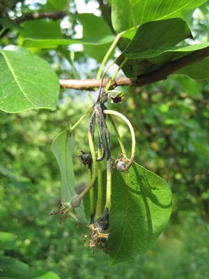 Vereinzelt wurden auch im Streuobstbau befallene Bäume festgestellt, so etwa in Mölten und Jenesien. Der Landespflanzenschutzdienst ruft daher vor allem die Besitzer von Birnbäumen im Streuobstbaugebiet auf, die Bäume zu kontrollieren und Pflanzen mit verdächtigen Symptomen wie vertrocknete schwarze Blütenbüschel und welke, gekrümmte Triebe umgehend dem Pflanzenschutzdienst in Bozen (Tel. 0471 415140) zu melden.