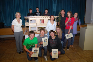 Ausgezeichnetes KlimaHaus-Modell: die Schülerprojektgruppe mit Lehrerin Evi Volgger.
